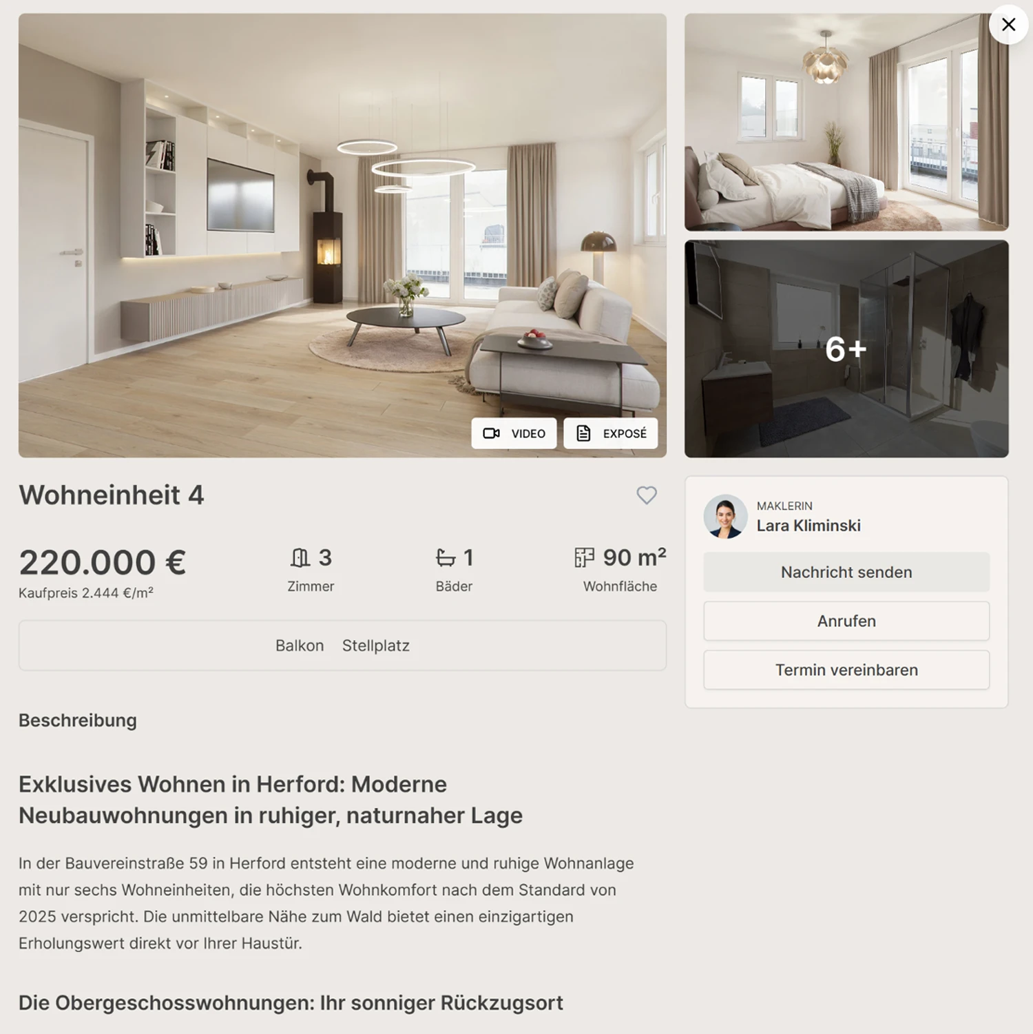 - Detailansicht mit Bildern, Exposé-Texten und Ausstattungsmerkmalen. Wie ein Online-Exposé für Makler.